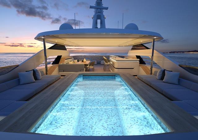 I due saloni, l’uno sul ponte di coperta e l’altro sul ponte superiore, offrono molteplici combinazioni per la sistemazione delle zone di vita comune degli ospiti. Il tender principale è sistemato in un garage sottocoperta mentre, all’estrema poppa, è stato ricavato un ampio beach club con piattaforma idraulica a sbalzo.