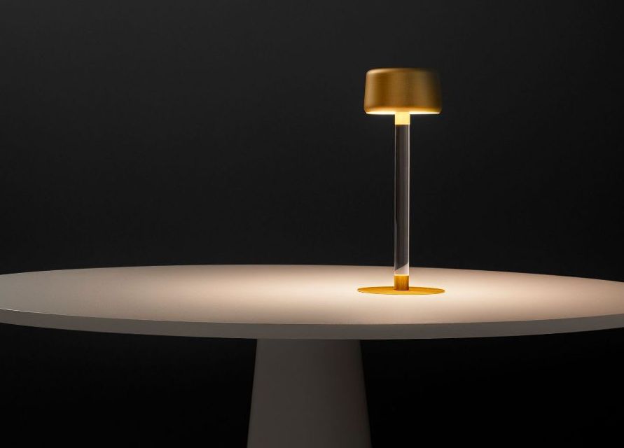 Tee è una lampada da tavolo senza fili, a batteria ricaricabile, progettata per illuminare il piano senza abbagliare.