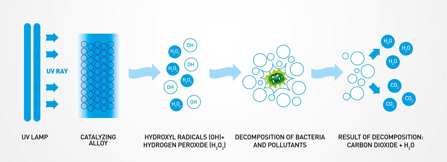 Alla base di questo sistema c’è la tecnologia PCO™ (Ossidazione Fotocatalitica), che imita e riproduce ciò che avviene in natura sfruttando l’azione combinata dei raggi di una speciale lampada UV con una struttura catalizzatrice senza per questo incidere su potenza e consumi delle imbarcazioni.