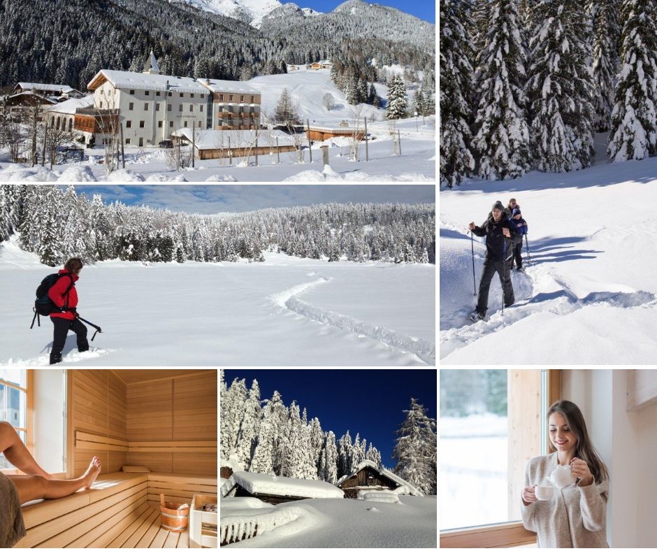 Passeggiate con le racchette da neve nella foresta di larice innevata, l’incanto del laghetto ghiacciato di Tret, il calore del fuoco alla malga San Felice. L’essenza dell’inverno all’Hotel Zum Hirschen si vive dal 3 febbraio al 10 marzo 2020, con 4 notti in mezza pensione, escursione guidata con le ciaspole e bagno ghiacciato nel laghetto San Felice, con sosta alla Malga di San Felice nei fine settimana, visita al maso Roatnocker, con degustazione di formaggi e pane di segale, ingresso in sauna. Il prezzo è da 359 euro a persona.